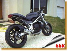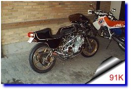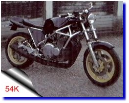 Fourche inversee, frein et roues 1100 gsxrselle ducati monstro et plein d'autres modifs...Ma moto est parue dans la revue " option motos " de juillet aout 1996Le moteur est un 1100 zx kawa avec supression de l'injection au profit d'une rampe de carburateurs ( depuis le temps ) | |||
