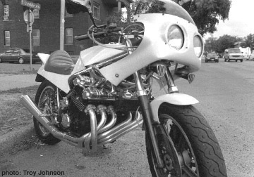 "C'est quoi ce six cylindres?" "Ca ressemble à un moteur CBX ?" "C'est pas un CBX ?" "Qu'est-ce que c'est ?" Des commentaires perplexes comme ceux-ci poursuivent Greg Smith chaque fois qu'il roule sur sa moto en ville jusqu'à sa ferme à Elk River. Si vous aviez vu ce six-cylindres, énigme nacré-blanc par un dimanche matin ensoleillé, vous auriez eu le privilège de regarder de près un CBX au cadre Moto Martin. C'est l'un des deux seuls exemplaires roulant actuellement aux Etats Unis. Le six-cylindres 24 soupapes CBX est un bon point de repère sur la route de la technique de Honda, et cette moto est devenue l'une des rares japonaises à collectionner. Bizarrement, cette moto appréciée a été une source de soucis durant sa production. La moto ne se vendait pas. Elle ne se vendait pas en 1979 et 80 avec ses 2 amortisseurs, trop classiques, alors Honda a travaillé la ligne, ajouté un amortisseur "mono-shock" en 1981 et ciblé un marché plus tourisme. Elle ne se vendait toujours pas. Après le modèle 1982, Honda était à cours d'idée pour son six et les entrepots étaient plein de CBX invendues. Ils ont mis le holà. Honda a par inadvertance assuré le futur culte de la CBX en confiant le surplus de motos aux écoles de mécanique. Le 1047 cm3 de plus de 100 chevaux a marqué l'esprit d'une quantité de jeunes et les CBX des écoles étaient des motos neuves de toutes pièces mais non enregistrables.