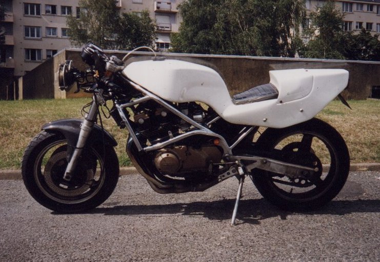 Modifications du tableau de bord : compte tour de kawa ZXR, compteur vitesse numérique. à prévoir : peinture, modifs platines de repose pieds alu (mono place), réfection moteur (pistons wiseco + 2mm) | |||