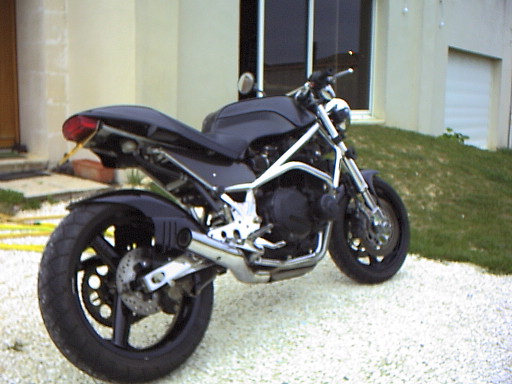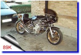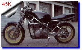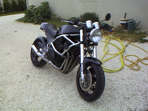 Fourche inversee, frein et roues 1100 gsxrselle ducati monstro et plein d'autres modifs...Ma moto est parue dans la revue " option motos " de juillet aout 1996Le moteur est un 1100 zx kawa avec supression de l'injection au profit d'une rampe de carburateurs ( depuis le temps ) | |||