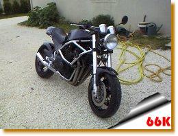Achat de cette moto en 1992 en très mauvais état. Démontage complet, rechromage, transformation en street bike | |||