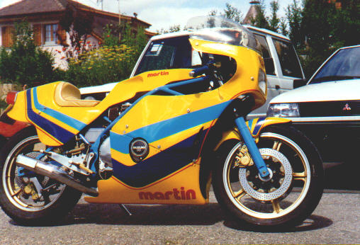 Bonjour, je viens d' acquérir un splendide Martin base kawa moteur 1000 RX type n°0000RIGINO188963A moto parue dans moto tuning de juin juillet 2002 mais je ne connais pas son n° de série officiel, sa datte de mise en circulation et 28/06/1989.Cette moto est nickel de plus équipée d'un kit nos, merci de ne faire parvenir des infos sur cette moto si toute fois vous en possédez. | |||